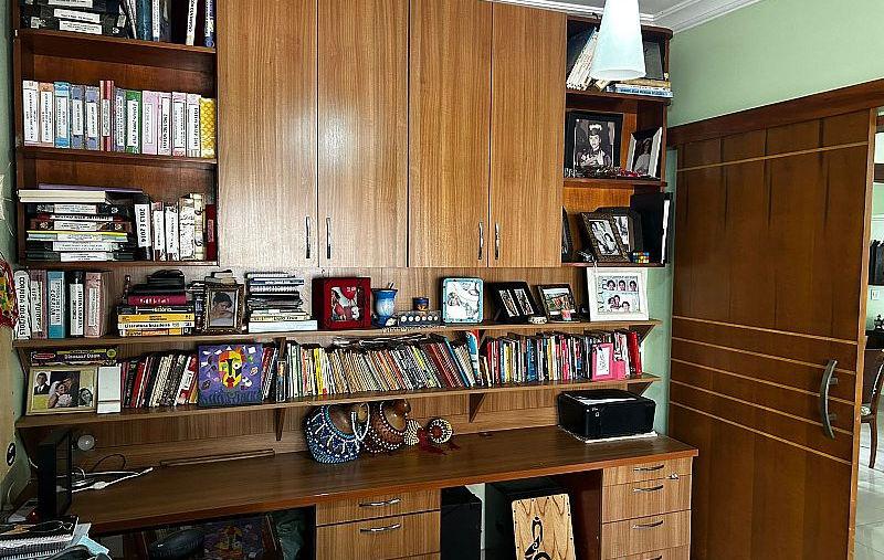 Vende-se Linda Casa Térrea, localizada na parte alta do Setor Santa Genoveva, DIVISA COM O SETOR JAÓ, contendo: 04 suítes com armários, sendo 02 plenas e 02 americanas, escritório mobiliado, sala de visita, copa, cozinha com armários, lavanderia, banheiro social, banheiro serviçal, varanda nos fundos com 90m2, churrasqueira com balcão, amplo quintal gramado, garagem, portas e janelas em madeira de lei.